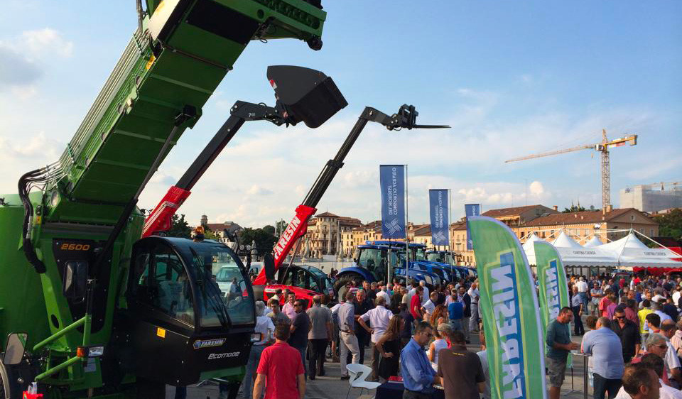 Faresin con 2500 agricoltori nella piazza tra le più grandi d’Europa, Prato della valle, Padova. Evento con il Consorzio del nordest. Il nuovo sollevatore telescopico VPS è uno dei protagonisti della serata.